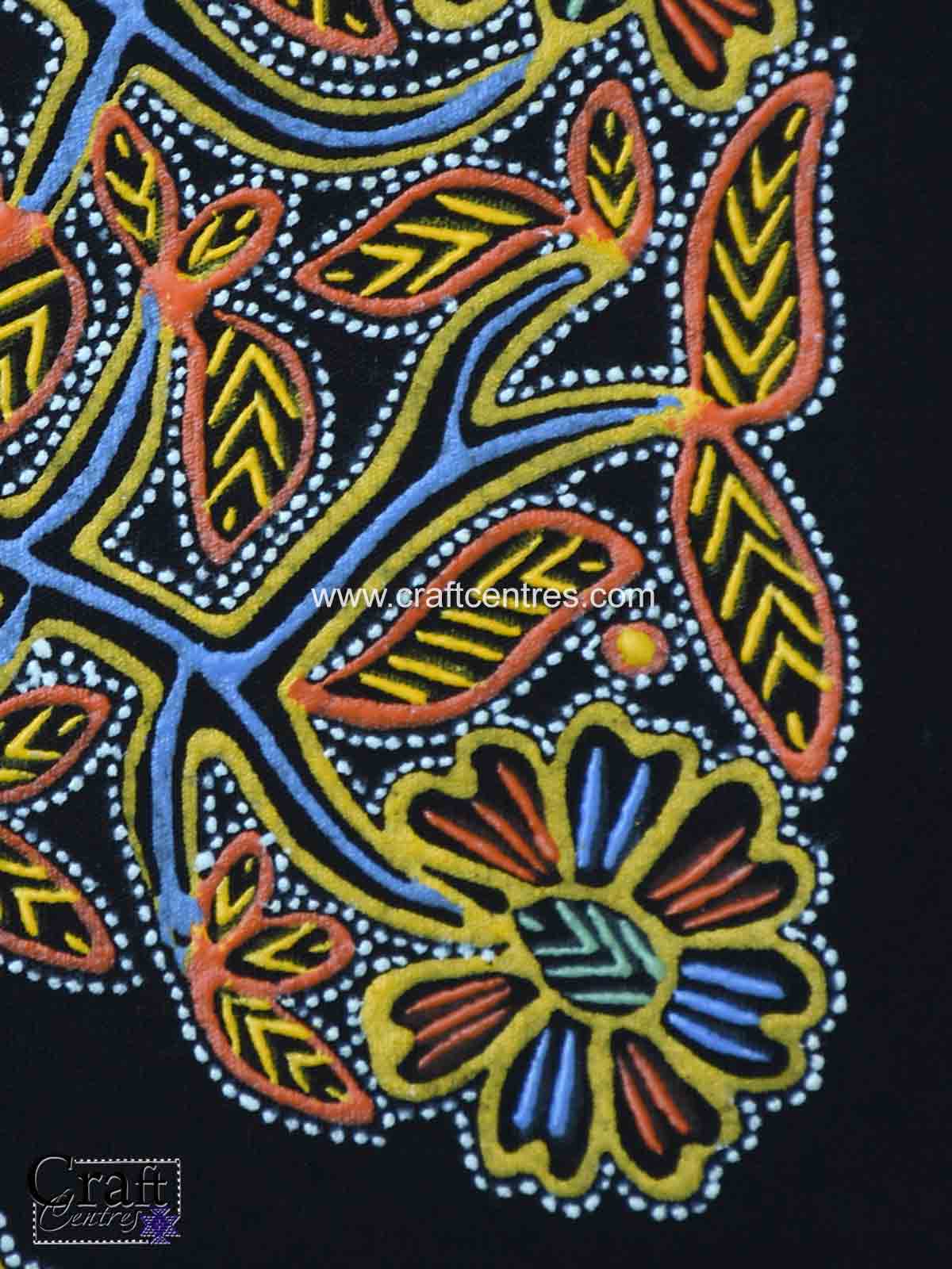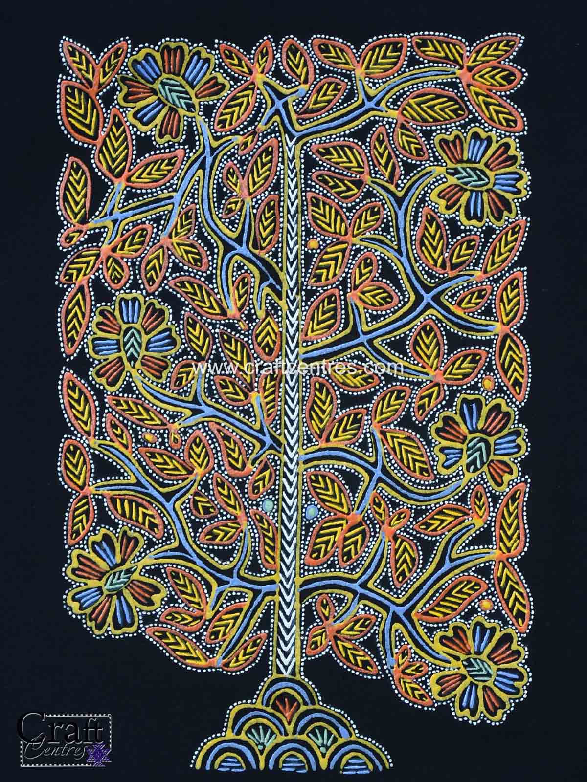 The Authentic Rogan Oil Painting Online By Master Indian Artist celebrates the Rogan tree of life motif executed in traditional Rogan technique. Painted by Ashish Kansara on pure black cotton, this 7 x 11 inch unframed artwork highlights flowing tree motifs, intricate dot work and rhythmic line patterns distinctive to Rogan chhap (Rogan painting). Ideal for compact wall displays or as part of a curated set, the high-contrast black background intensifies the pigment work and textured strokes. The piece blends cultural authenticity with modern sensibility—an excellent choice for collectors of Indian folk arts and those seeking unique handmade wall décor.