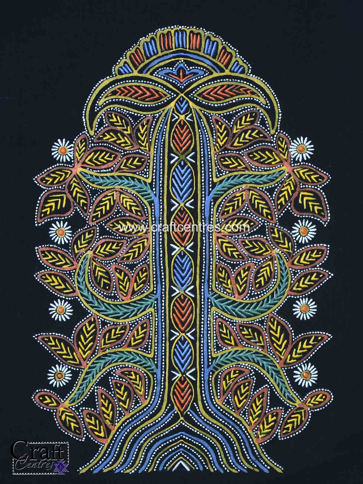 We proudly present the Rogan Aura: Tree of Life Rogan Art. Not only does Ashish Kansara from Madhapar design this wall hanging, but he also handcrafts it, ensuring that it upholds the finest traditions of Rogan Art. Furthermore, you can pair it with brown frame for a complete look to home décor. Be sure to explore our shop page for more details.
